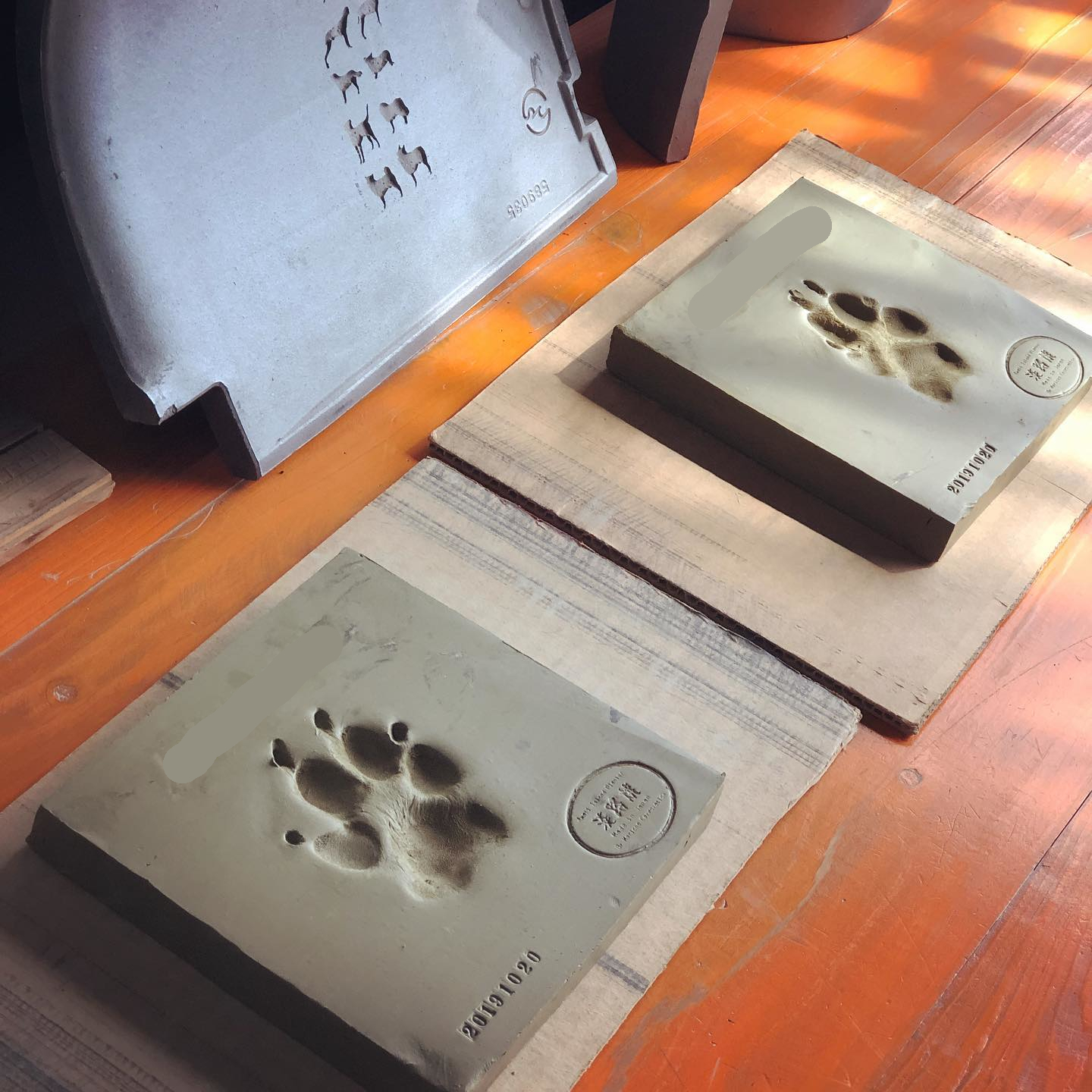 - 瓦粘土で手形を押しに